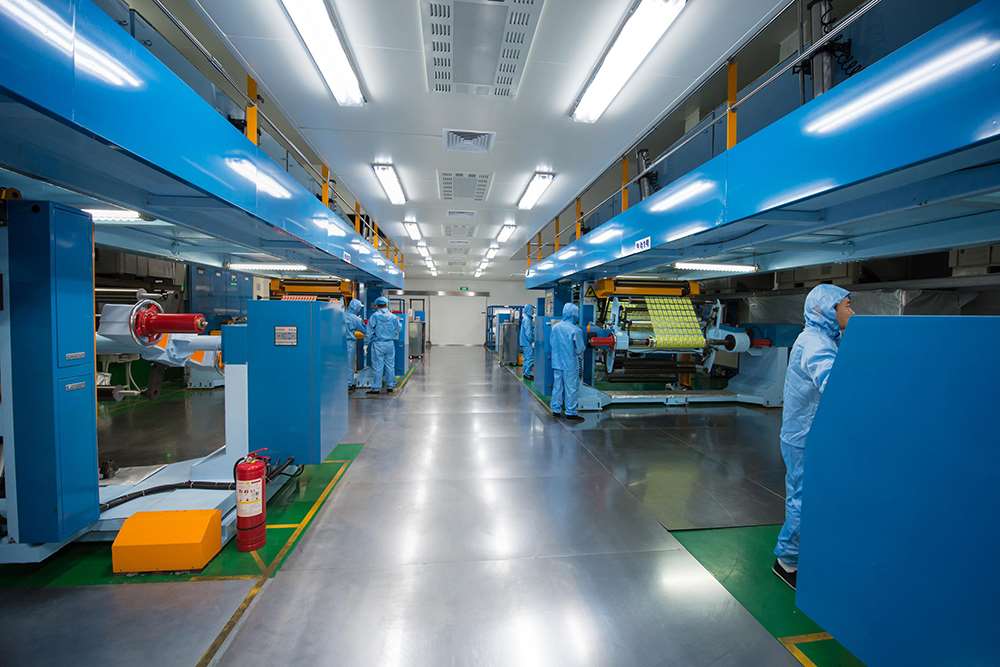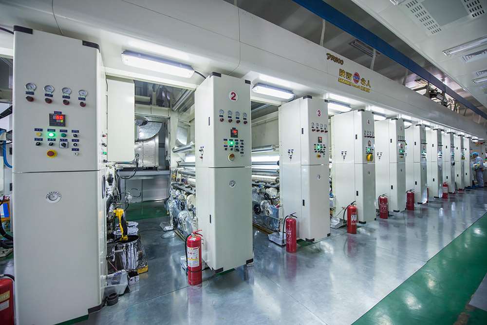 擁有齊全的先進(jìn)的實(shí)驗(yàn)室檢測(cè)設(shè)備(如美國(guó)安捷倫氣相色譜儀、紅外光譜儀等)、自動(dòng)化高速單元式印刷機(jī)3臺(tái)、鋁箔(PVDC)印刷涂布機(jī)2臺(tái)、干式復(fù)合機(jī)2臺(tái)、環(huán)保型無(wú)溶劑復(fù)合機(jī)3臺(tái)、高性能多層共擠上下吹膜機(jī)4臺(tái)、流延擠出機(jī)1臺(tái)、薄碼噴涂檢品機(jī)5臺(tái),分切機(jī)6臺(tái)、制袋機(jī)生產(chǎn)線25臺(tái)、鋰電池用鋁塑膜相關(guān)設(shè)備5臺(tái)。年設(shè)計(jì)生產(chǎn)能力1萬(wàn)噸,年產(chǎn)值4.0億元。